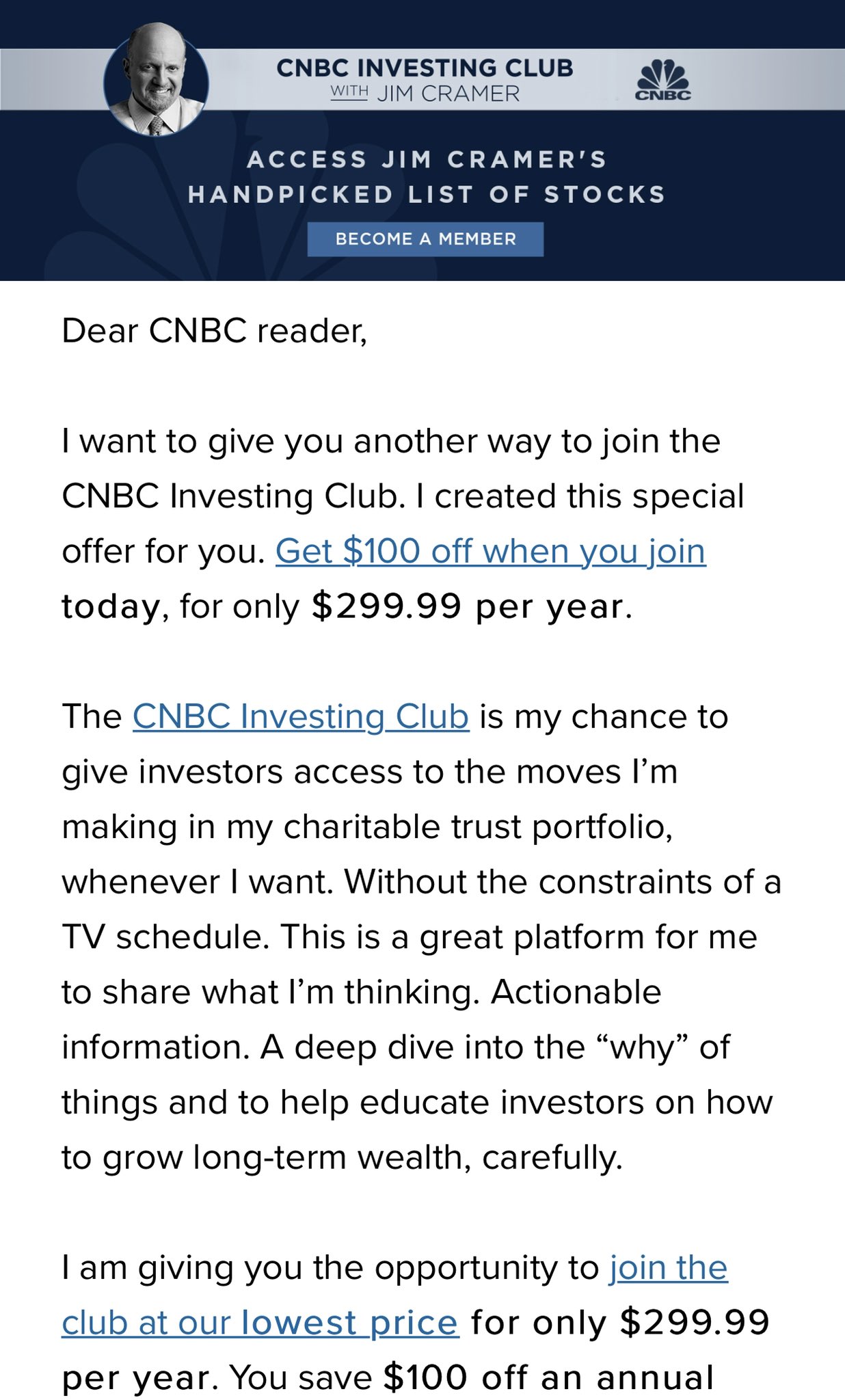 . Cnbc investing club subscription price Wednesday June 8 2022 Edit. Personally I dont think its worth paying 39999 per year for it. Jim Cramer has signed a new deal with CNBC that includes continuing Mad Money wJim Cramer and Squawk on the Street as well as.